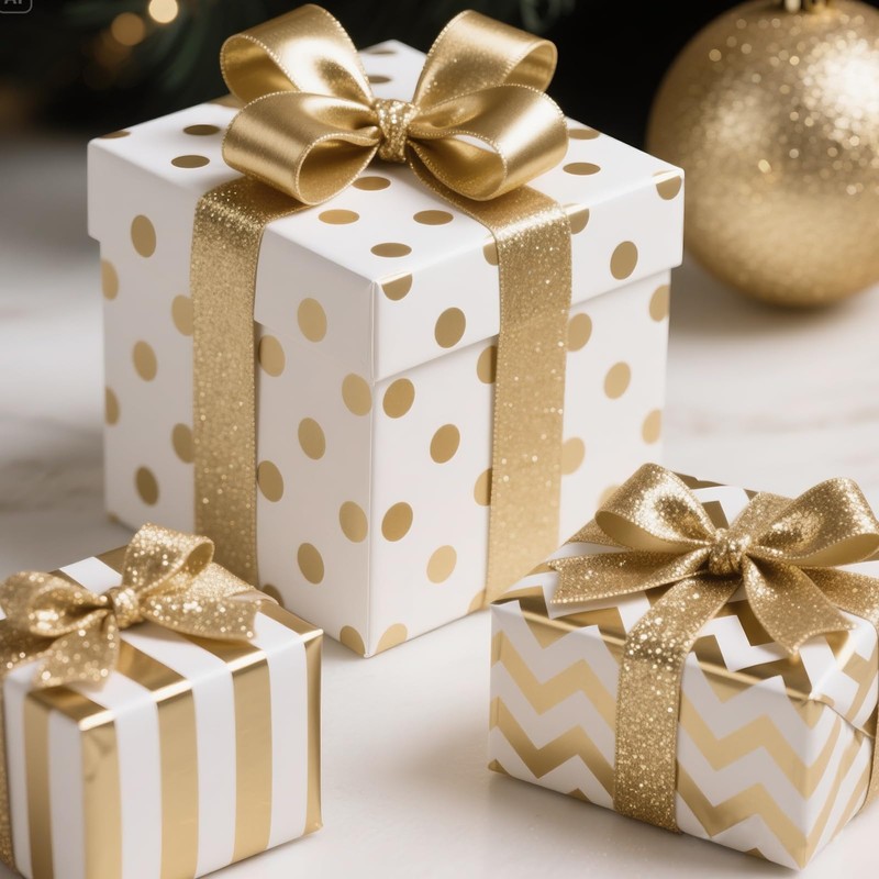 | Color: | White with Gold Strips, Waves, Dots |