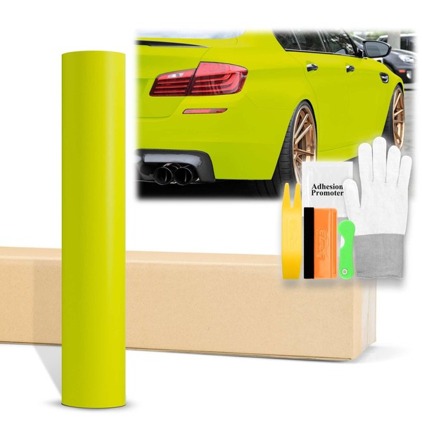 60"x108" (5FTx9FT) Ultra Matte Flat Acid Lime Vinyl Wrap Auto Car Sticker Decal Film Sheet Bubble Free Air Release Technology with Tool Kit