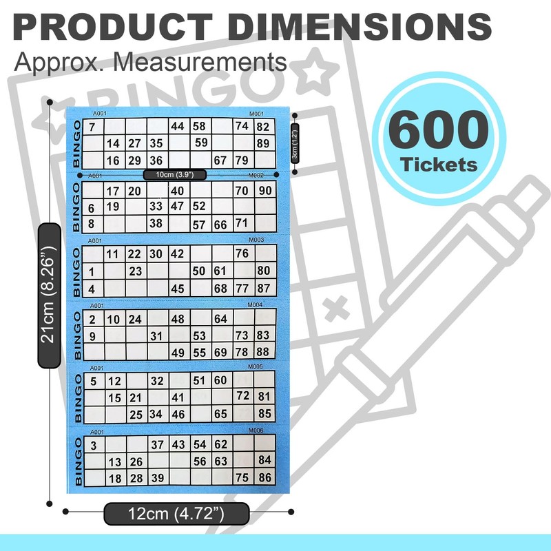 - 🔵🎲🔵🎲 600 BINGO TICKETS - With 600 tickets included, you'll have a more than ample supply for large gatherings, fundraisers, or community events