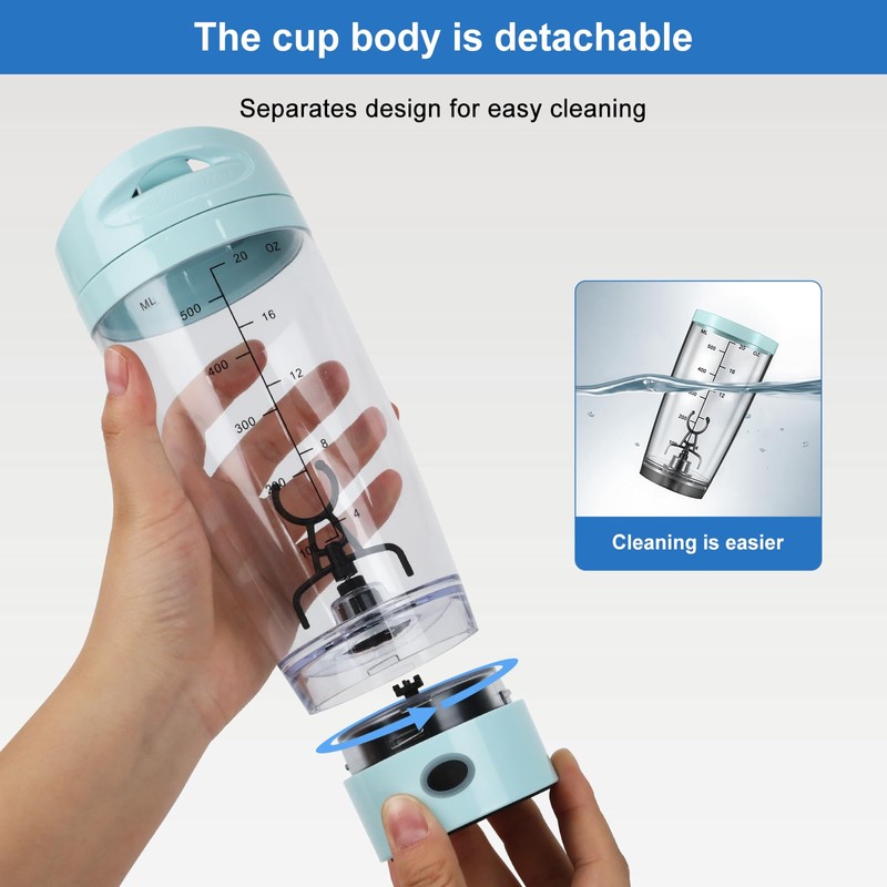 - 【Powerful Battery】With its shaker elektrisch, sporty design, this protein shaker is perfect for fitness enthusiasts, providing a convenient way to stay hydrated during workouts. In order to achieve more powerful mixing, our motors are a more efficient motors. The powerful motor ensures that there are no remaining blocks (the performance may be slightly reduced when the battery is low).