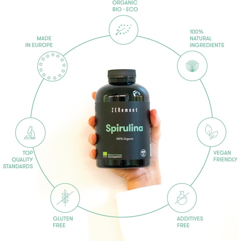 600 Organic Spirulina Tablets – 100% Pure Algae, 3000mg per Serving – Detox & Satiating, Rich in Plant-Based Protein – Additive-Free & Allergen-Free