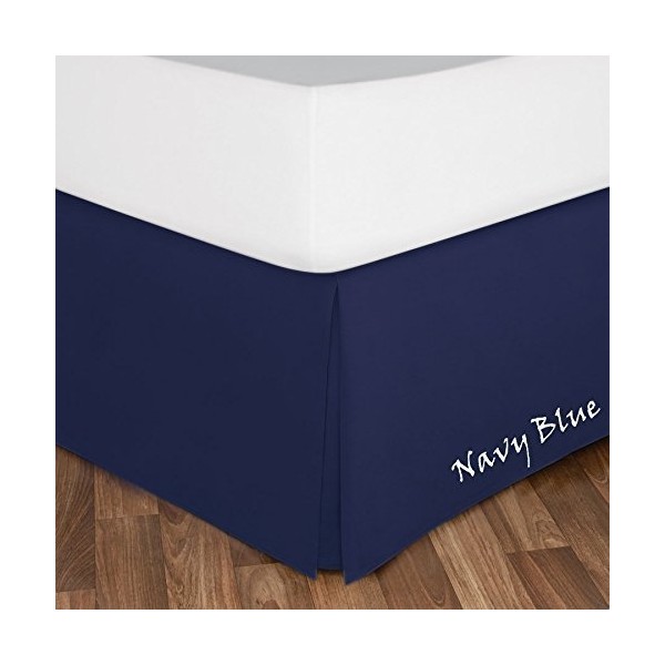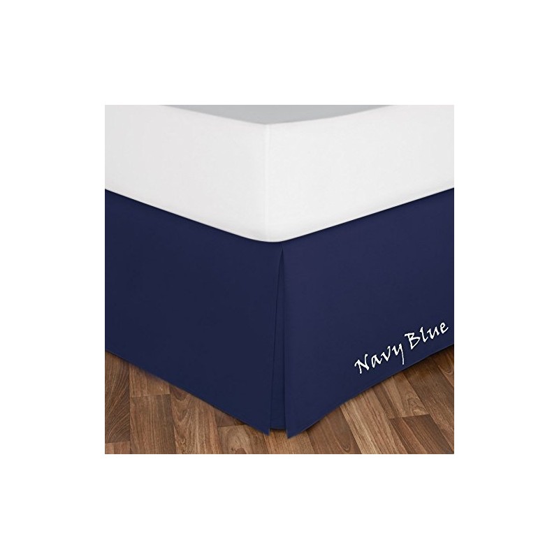 600 Thread Count Both Pattern Solid 1 Piece Bed Skirt 14 Inch Fall 100% Egyptian Cotton and Color ( Full, Solid, Navy Blue)