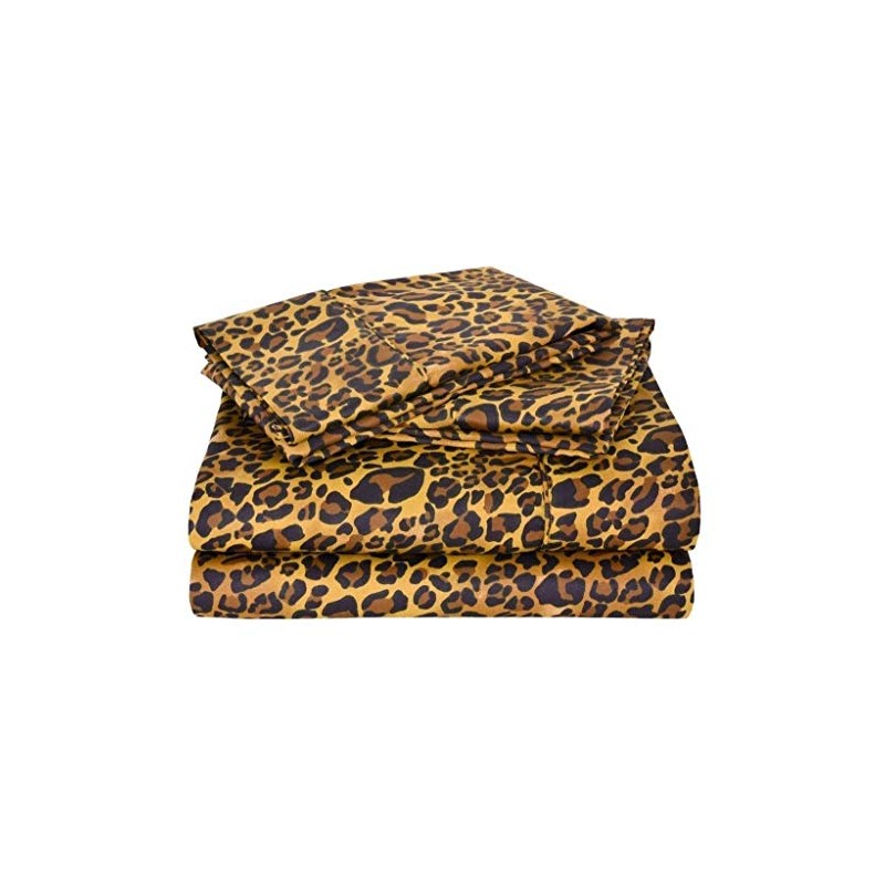 600 Thread Count Super Soft Cotton Twin Size Bed Sheets Leopard Print