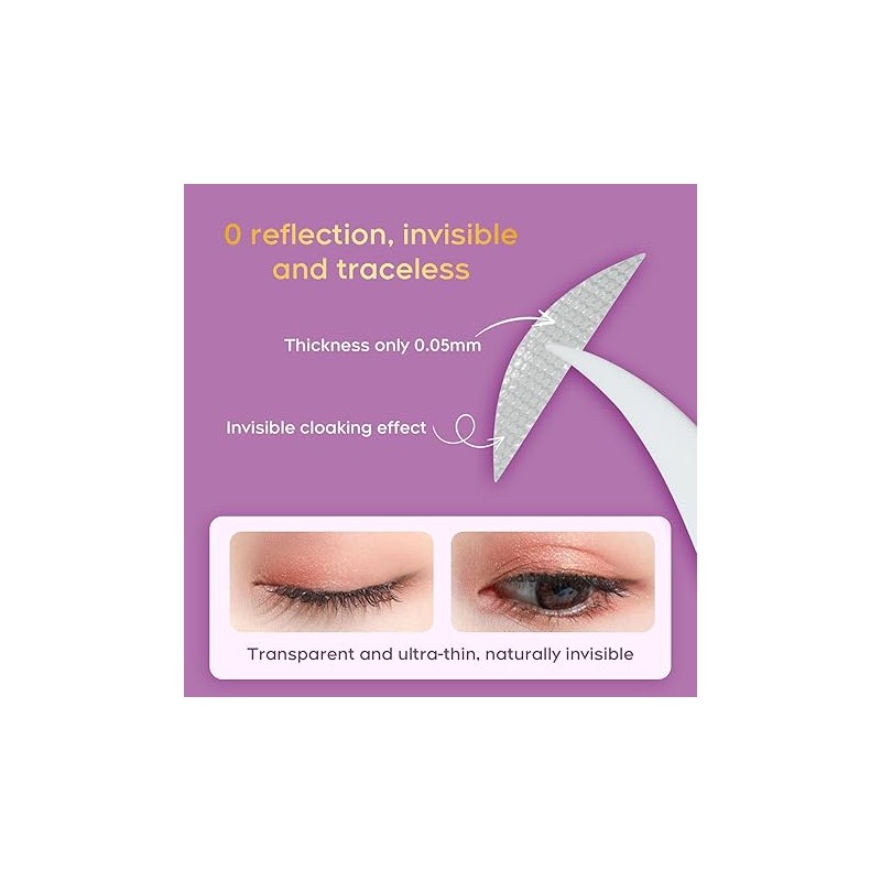 - [Naturally invisible, enlarge your eyes] Our eyelid tape and eyelid lifter strips are designed with ultra-thin invisible materials, which fit the skin without leaving any traces, and easily create a natural double eyelid effect. Whether it is daily makeup or important occasions, it can make your eyes more vivid and enlarge your eyes.
