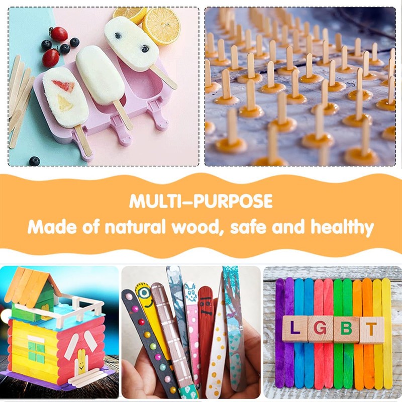 - 【Easy to Use】 Wooden popsicle sticks crafts are easy to use. With just a simple gesture, perfect production of ice cream. They also can be easily cut into smaller parts with scissors or utility knife. Great for group activities, rainy day projects, camp and scout crafts and more. You Can Brighten Up Your Creations With Yarn, Fibre Pens, Buttons, Sequins, Pom Poms, Googly Eyes Etc !