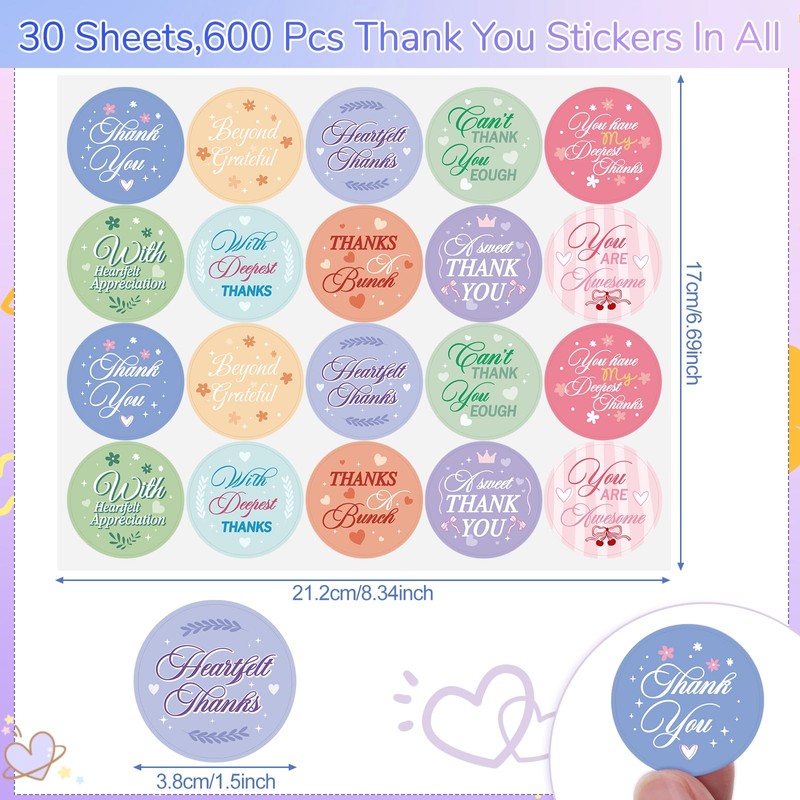 600Pcs Thank You Stickers,1.5 Inch Round Thanks Decals for Packaging & Envelope Seals for Small Business,Envelopes, Boxes, Gift Bags