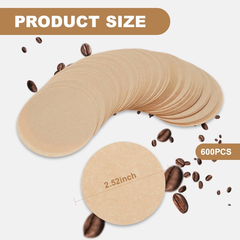 - Value Pack: You will receive 6 packs of round unbleached paper, each pack of 100 pieces, a total of 600 pieces, diameter: 6.4 cm/2.5 inches, these replacement paper filters are stored in a transparent sealed bag.