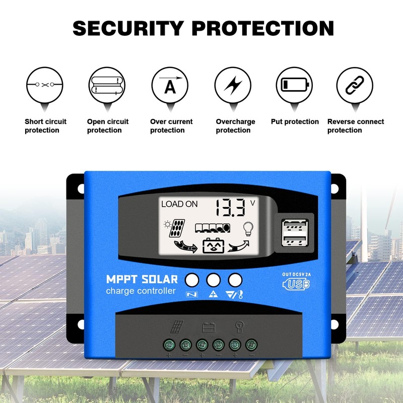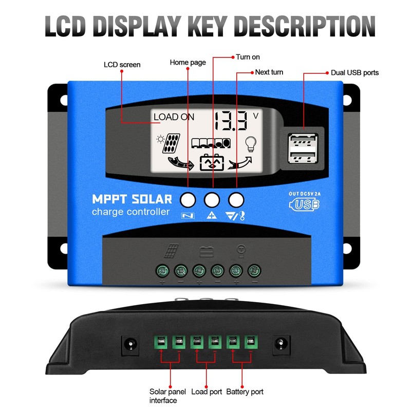 60A MPPT Solar Charge Controller 12v/24v Current Auto Focus MPPT Tracking Charge with LCD Display Dual USB Solar Regulator Charge Controller Multiple Load Control Modes