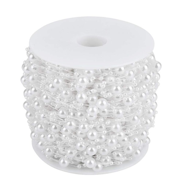 60m roll Pearl Wire Beads, 3mm 8mm Artificial Pearls String Beads Chain Pearl Garland Roll for DIY Wedding Party Decoration (White)