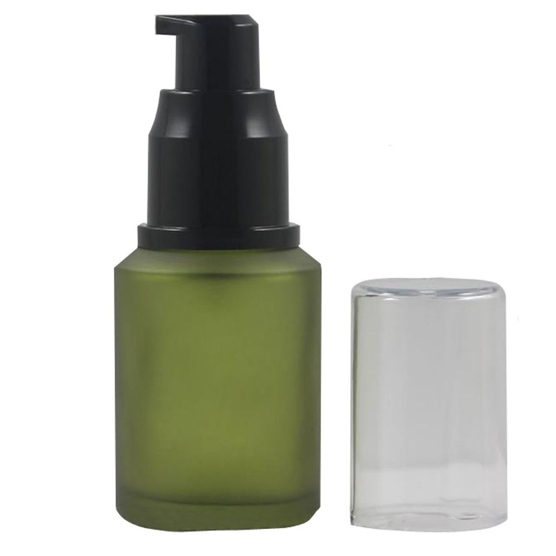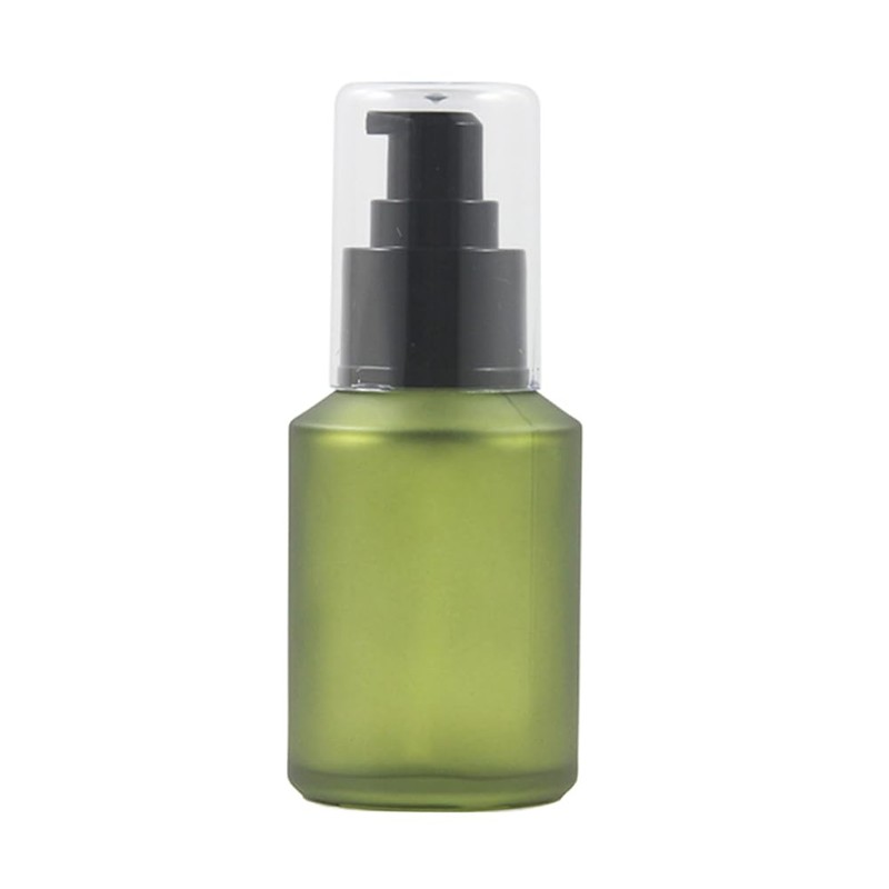 60ML/2oz Empty Green Frosted Glass Lotion Pump Press Bottles Refillable Emulsion Makeup Cosmetic Cream Essential Oil Dispenser Vials Container Storage Jars with Cap and Pump Head