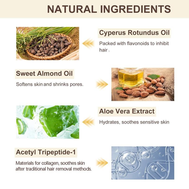 60ml Cyperus Rotundus Hair Reduction Oil, Herbal Formula to Gently Soothe Skin, Safe for All Body Areas, Suitable for Men & Women