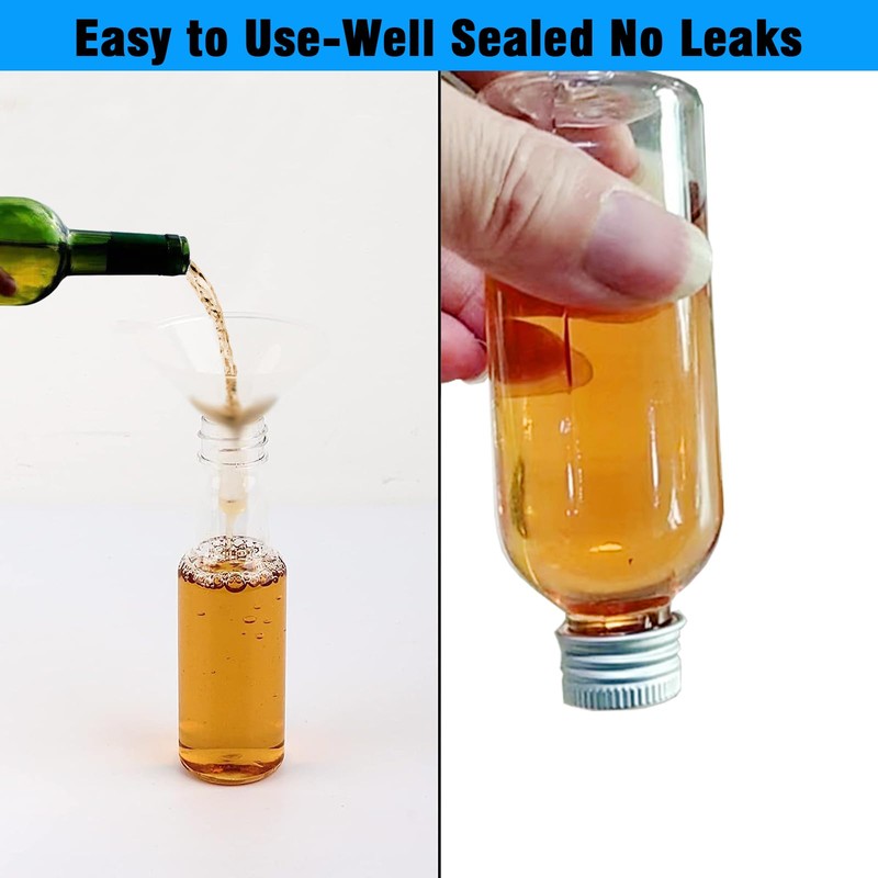 60ml Plastic Bottles,Mini Alcohol Bottles with Silver Screw Caps, Reusable Sauce Bottles with Funnel, Parties & Wedding Miniature Alcohol Bottles (60ML)