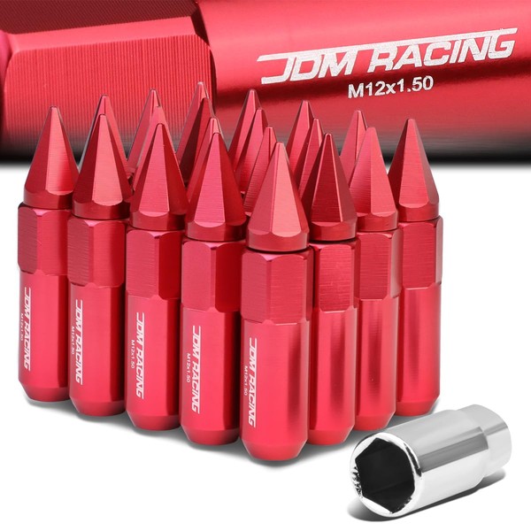 60mm Aluminum M12 x 1.5 6-Point 20mm OD Red 20 Lug Nuts with 30mm Caps Set Adapter, Red