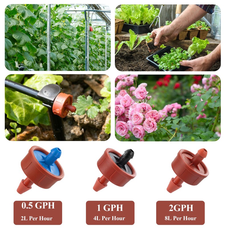 - 【Easy to Use】The irrigation drip emitters can be directly connected to1/4 inch drip irrigation tubing or inserted into a 1/2 inch or larger drip tubing use a1/4 inch hole punch,Its self-flushing system clogging resistance function makes the irrigation emitters ideal for plants, trees, greenhouse, nursery, orchards watering