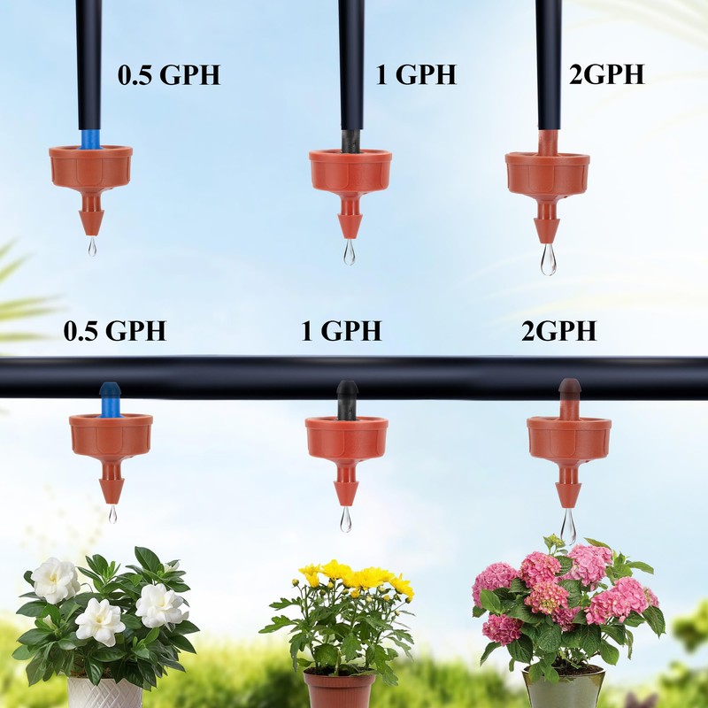 - 【Package Included】You will get 60 pcs 2 GPH pressure compensated drippers, the irrigation drip emitters provides constant flow for the plant,different flow rates of drip heads can be inserted into one drip irrigation pipe to meet water needs of different plants,beneficial for promoting plant root development, freeing hands, and improving horticultural efficiency