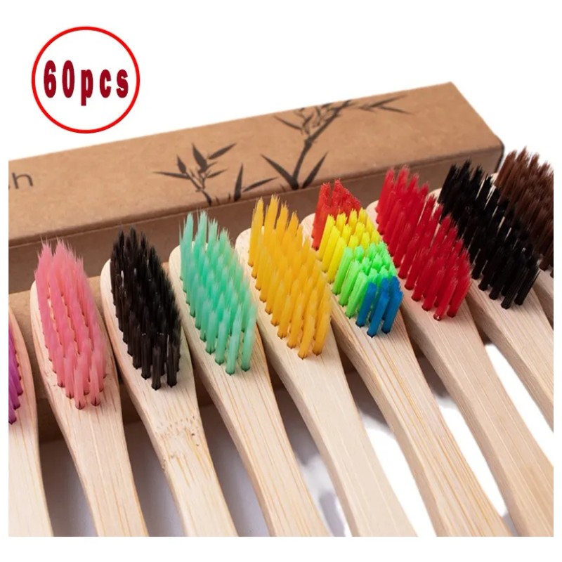 60pcs Cepillos Bambú Ecológicos Biodegradables - 10 Colores