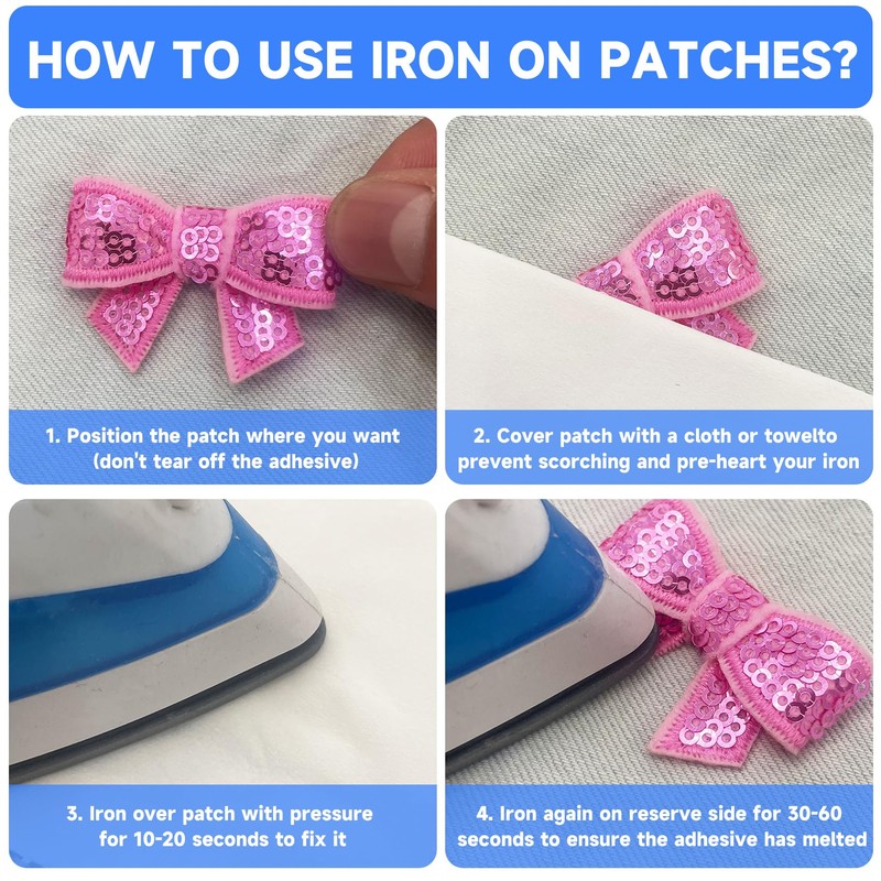 - Durable Material: Our bow embroidered patch are made from high quality polyester silk thread and sequin, soft in texture and sturdy to use , can use long time.