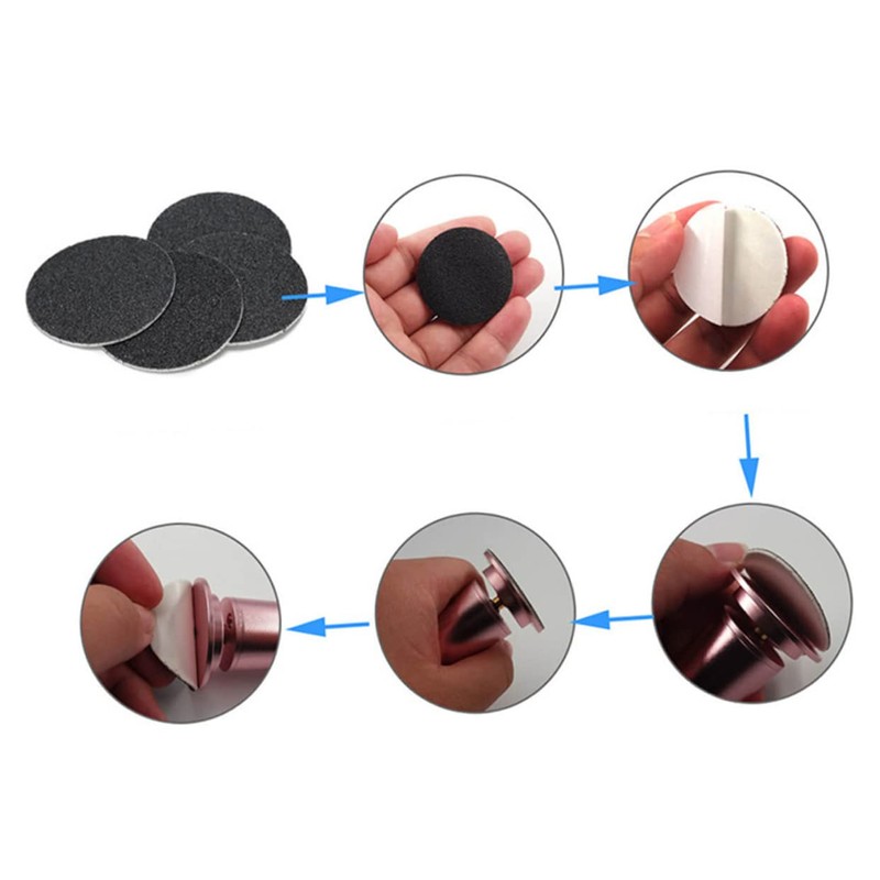 sanding pads This product is replacement sandpaper disk.foot remover After using, we can easily remove it from the electric remover.sandpaper refill discs They can effectively remove dead skin, dry skin, hard skin and callouses.disposable Sanding discs They are disposable, hygienic, and one disk for one person use, for nail salon or family use.manicure tools The reliable adhesive backing makes it easy to paste and won't off