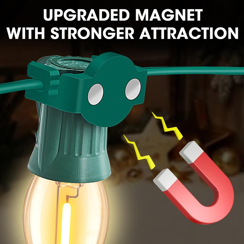 - EASY TO INSTALL ADN DISASSEMBLE MAGNETIC HOOKS FOR CHRISTMAS LIGHT: Just put the C9/C7 Socket into the magnet clip and attach it to the metal roof or fence you want, without sticking or punching holes. It is very friendly for homeowners or rooftop professionals who frequently use seasonal lighting to decorate their yards or roofs