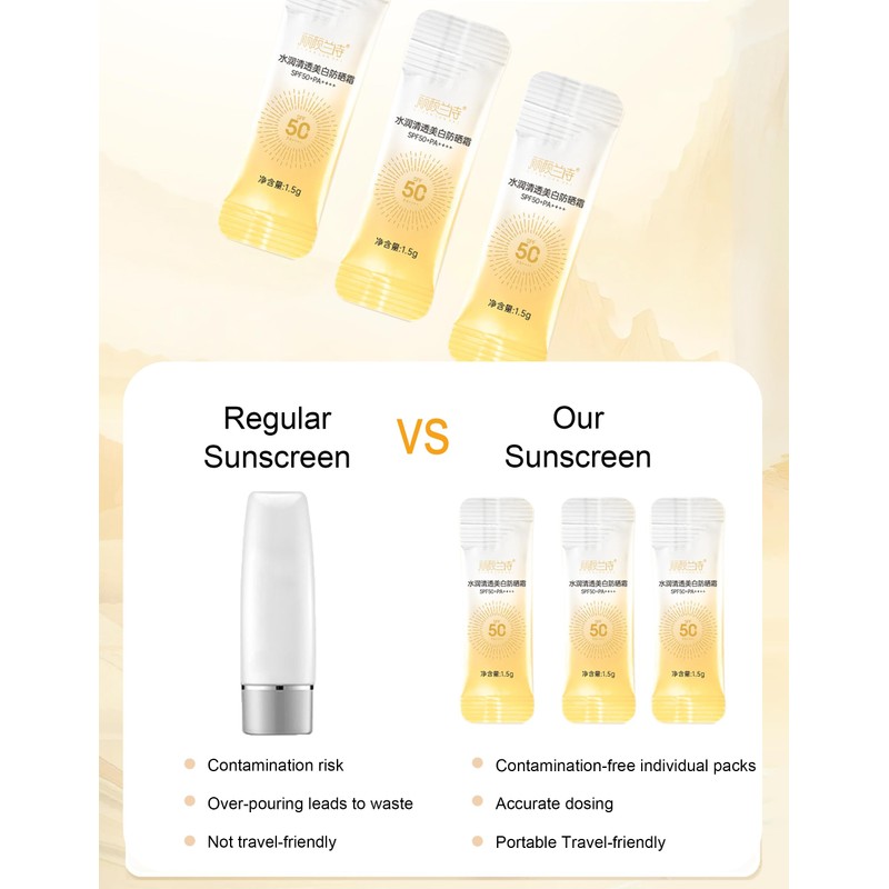 - Ultra-Portable & Travel-Ready – Each 1.5g travel size sunscreen fits in pockets, purses, or gym bags. Ideal for travel, hiking, beach trips, or sports. No spills, no mess!