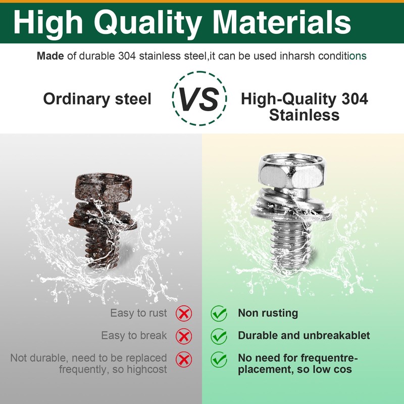- Quality Materials: These battery terminal bolts and nuts are made of 304 stainless steel and are strong, reliable, corrosion-resistant, and rust-proof