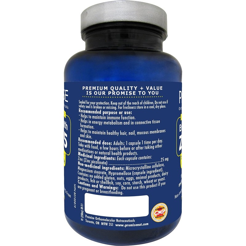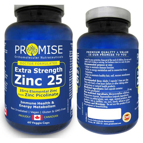🇨🇦 60vcaps ZINC PICOLINATE High Potency 25mg, for Healthy Skin & Eyes Energy Metabolism, Immune System & Antioxidant Support, Optimal Zinc Absorption, Made In Canada