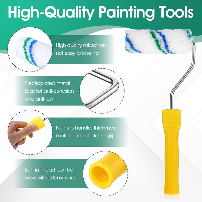 - 【VERSATILE APPLICATION】- Microfiber paint roller cover designed for use with all paints and stains. Whether you're painting walls, ceilings, or applying paint on wood or other surfaces, this 4 inch paint roller set meets all your painting needs, especially suitable for small spaces, house siding, and more.