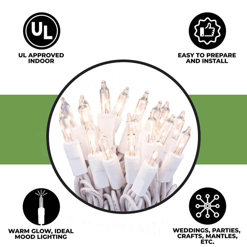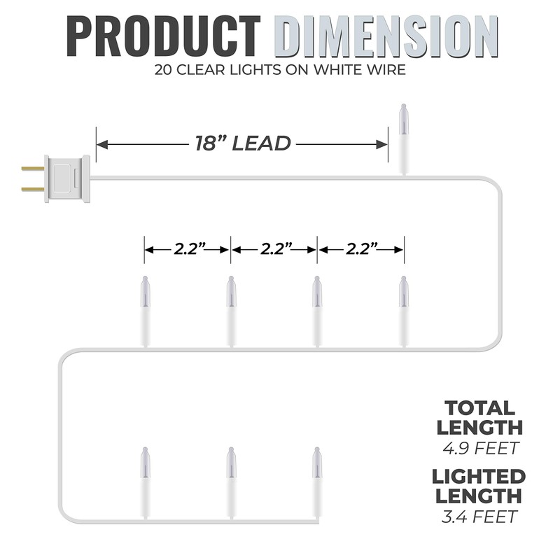 612 Vermont Clear 20 Count Christmas String Lights on White Wire Cord, UL Approved for Indoor Use Only, Total Length 4.9 Foot, Lighted Length 3.4 Foot