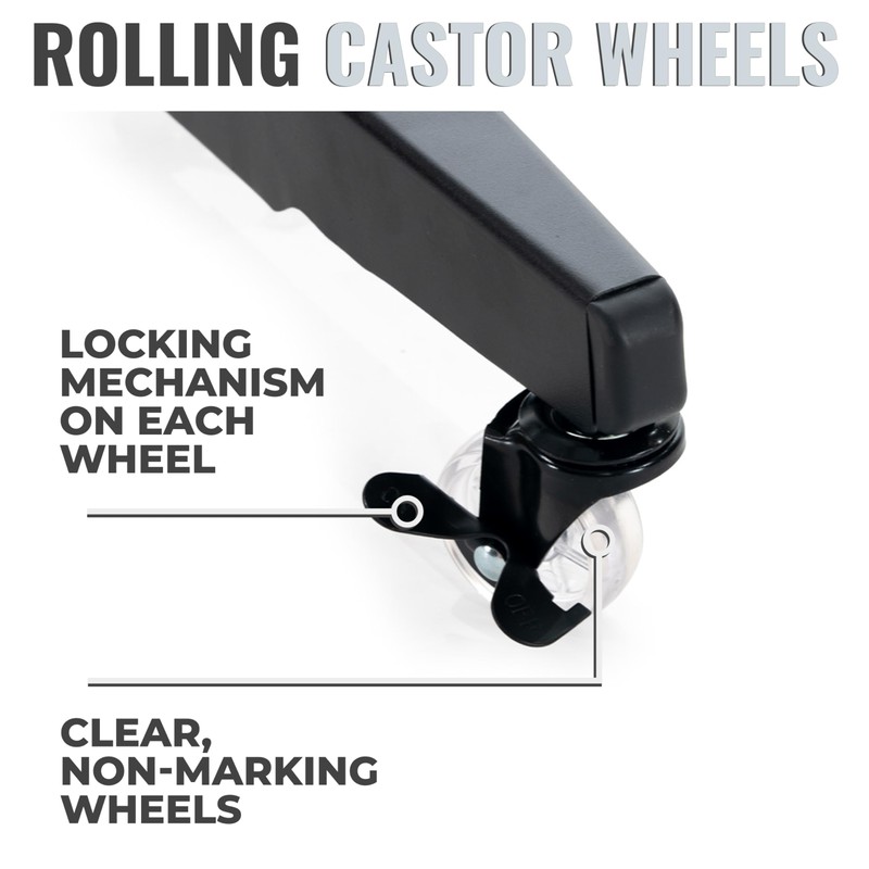 - Non-marking, scratch resistant clear castor wheels with locking device
