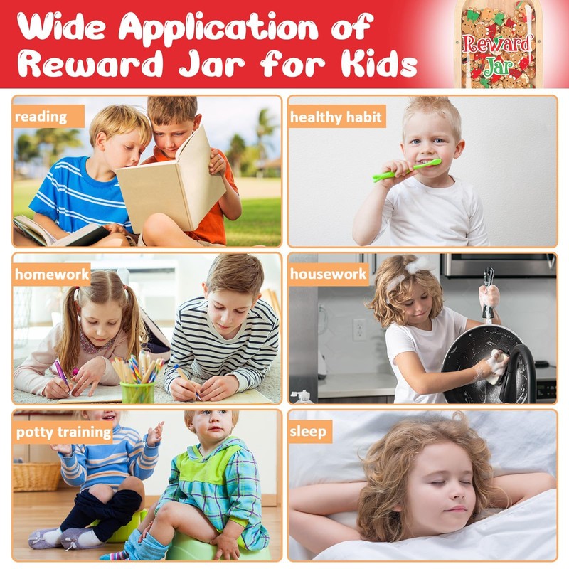 - Size and material: The potty training reward jar dimensions are 20x12x0.8cm/7.9x4.7x0.7inch, made of wood, sturdy and durable, not easily worn or broken. The wood surface is carved to ensure no tiny wood chips hurt your hands.