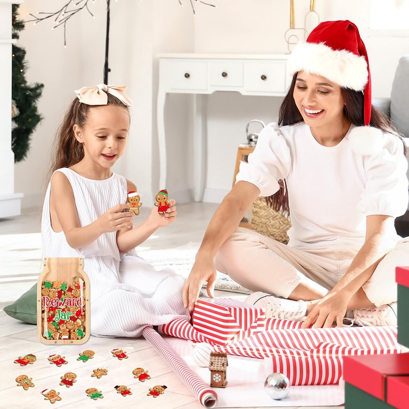 - Christmas gingerbread design: The wooden Xmas training reward jar for children features an attractive and trendy design, with "reward jar" engraved on it and a variety of colors to capture children's attention. Cute gingerbread man wooden blocks are used to help children establish healthy daily habits and reward positive behavior and a sense of responsibility, making it both fun and useful.