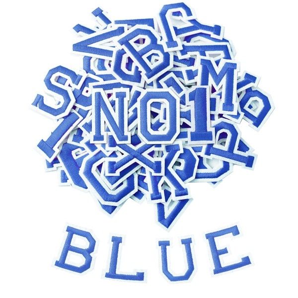 62 Pcs Blue Iron on Letters and Numbers Patches, A-Z Alphabet and Numbers 0-9 Embroidery Applique Patch for Clothing, Shoes, Bags, Hats, DIY Crafts (Blue)