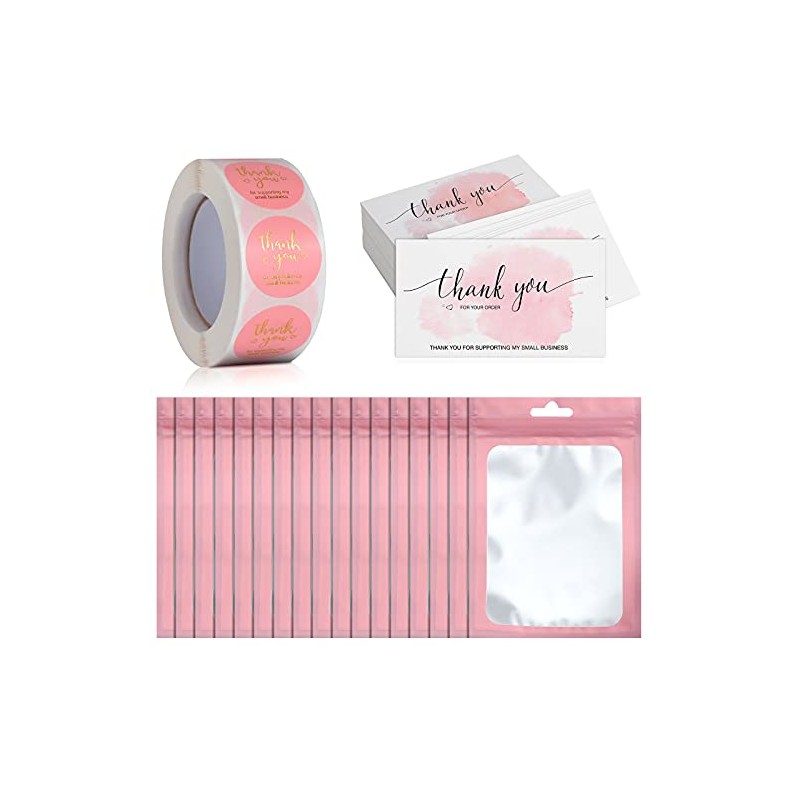 620 Pieces Thank You Cards and Stickers Set Thank You Gold Foil Stickers Thank You for Supporting My Small Business Stickers with Resealable Packaging Bag, Suitable for Business Owners (Pink)