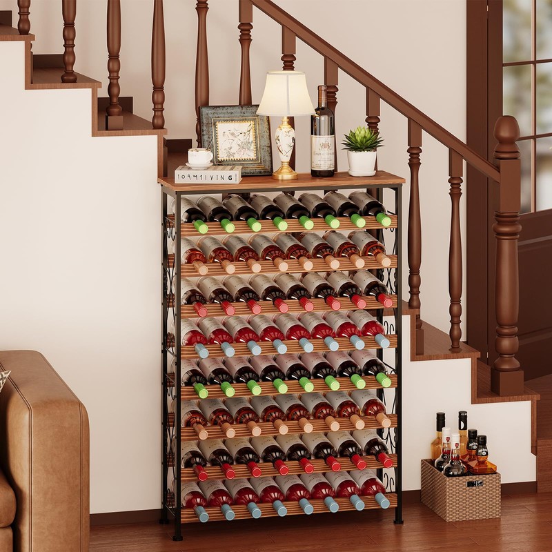 - Large Capacity Wine Rack (8X8): This large wine rack can hold up to 64 bottles, making it the perfect solution for your wine storage, collection, and display needs. With 8 rows and 8 columns, it provides ample space for organizing your wines in an elegant and accessible way. Whether placed in the kitchen, wine cellar, pantry, or living room, this rack helps keep your wine area tidy and beautifully displayed, ensuring your collection is always within reach and easy to browse.
