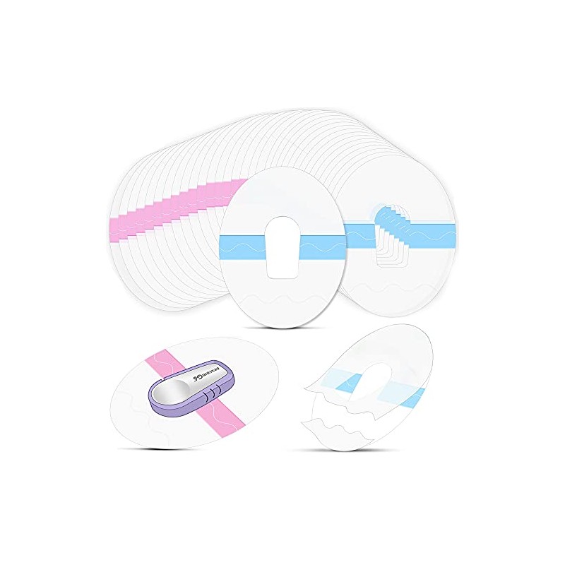 64 Pcs Shower Waterproof Patches Transparent Waterproof G6 Adhesive Patches Clear Sensor Covers Patch for G6 Overpatch Sticker Long Lasting Sweatproof Continuous Glucose Monitor Protection, Pink Blue