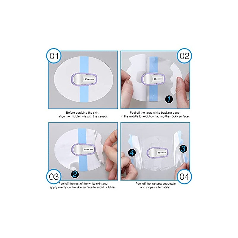 Each patch has no latex acrylic adhesive, so it is soft, thin, and able to dry quickly; With it, you can stretch and move with your body for maximum comfort and less irritation, ensure that the sensor is safe to use in every movement.