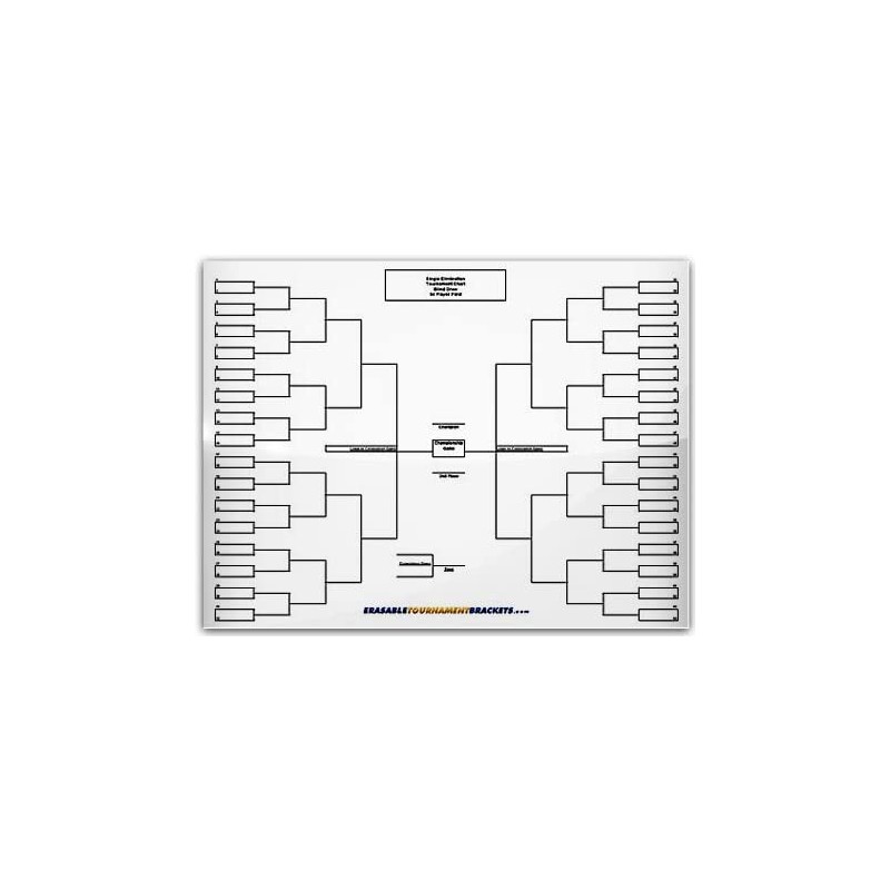 - ERASABLE TOURNAMENT CHART - 64 Player Blind Draw Single Elimination Erasable Tournament Bracket Chart with 1 Dry Erase Pen