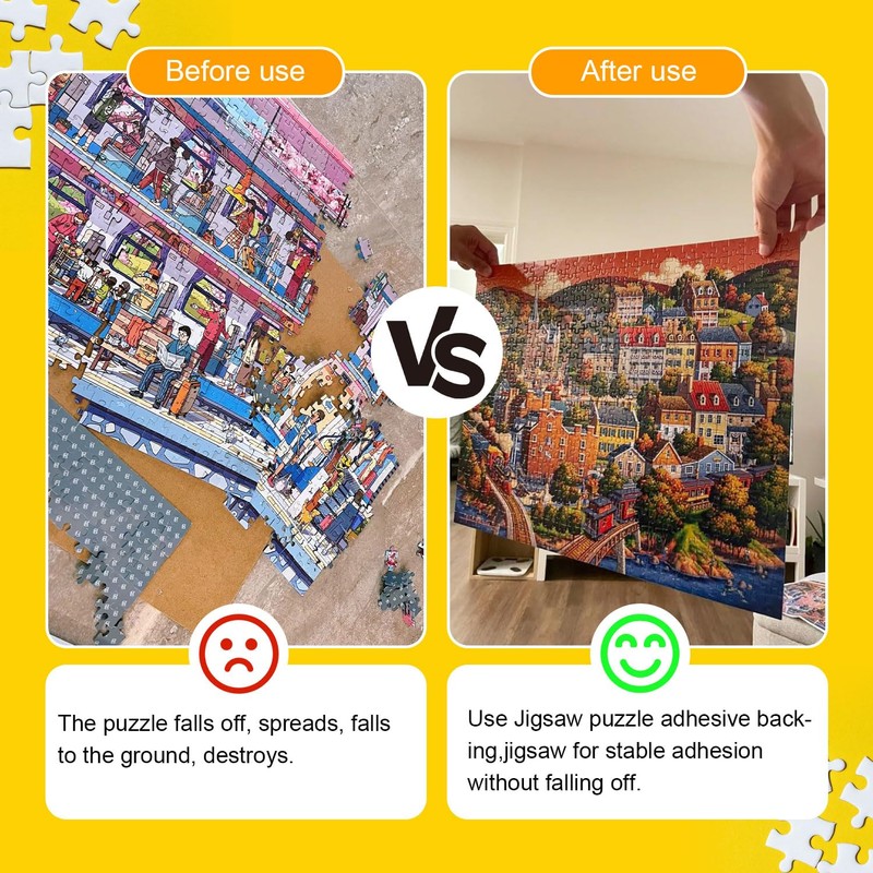 - Efficient bonding: thanks to the properties of the double-sided adhesive, quick and firm adhesion can be achieved on various smooth surfaces without the need to use other adhesives or tools, which simplifies the gluing process and improves work efficiency. It is the best replacement for jigsaw glue. Strong adhesive, can fix the puzzle firmly and protect the puzzle, puzzle glue and hang up