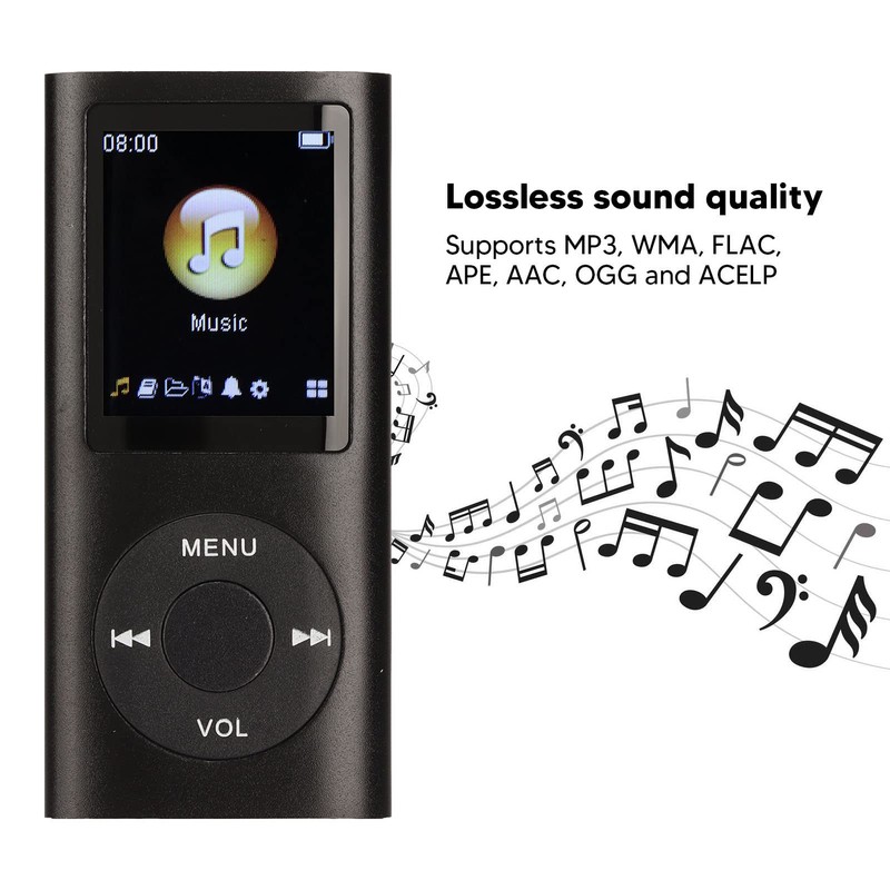 - Lossless Sound Quality: Portable MP3 music player has lossless sound quality and supports MP3, WMA, FLAC, APE, AAC, OGG and ACELP.