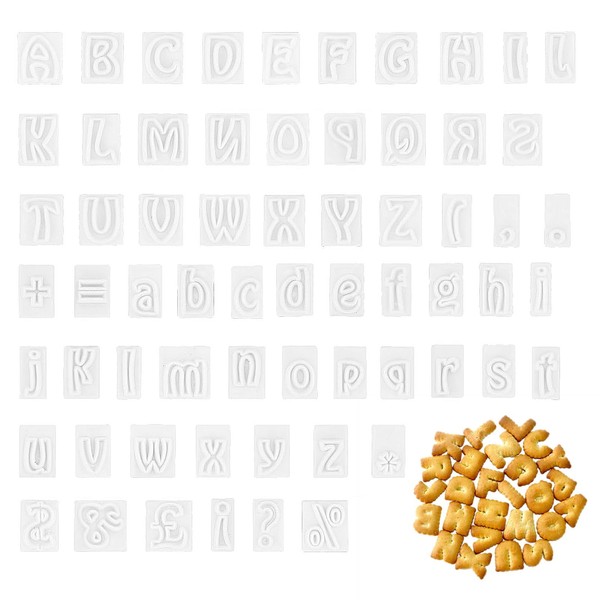 64Pcs Alphabet Cookie Cutters, Letter Cutter Moulds, Small Fondant Cookie Cutter Letters, with 12 Symbols Marks