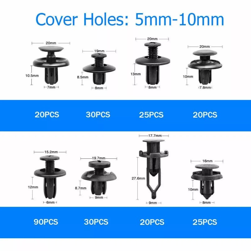 Wide Range of Applications: These push clips are widely used in body clips, decorative plate holders, door decorative fasteners, door plate clips, bumper clips, fender clips, engine cover and splash guard holder replacement.