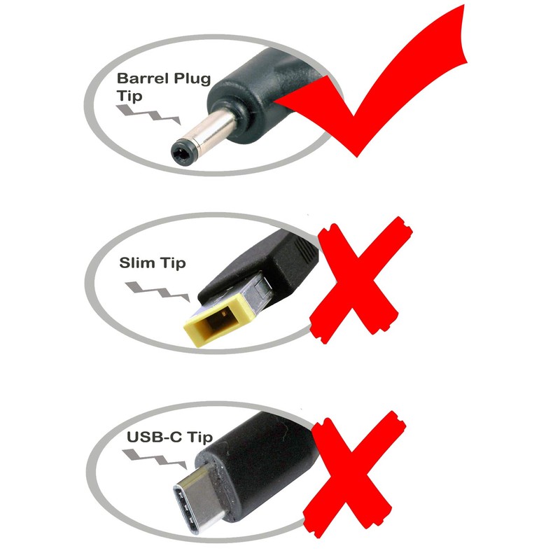 - Please note this adapter comes with a barrel plug tip (see pic 3); This 65W laptop AC adapter replaces the original 20V 2.25A 45W / 20V 3.25A 65W charger