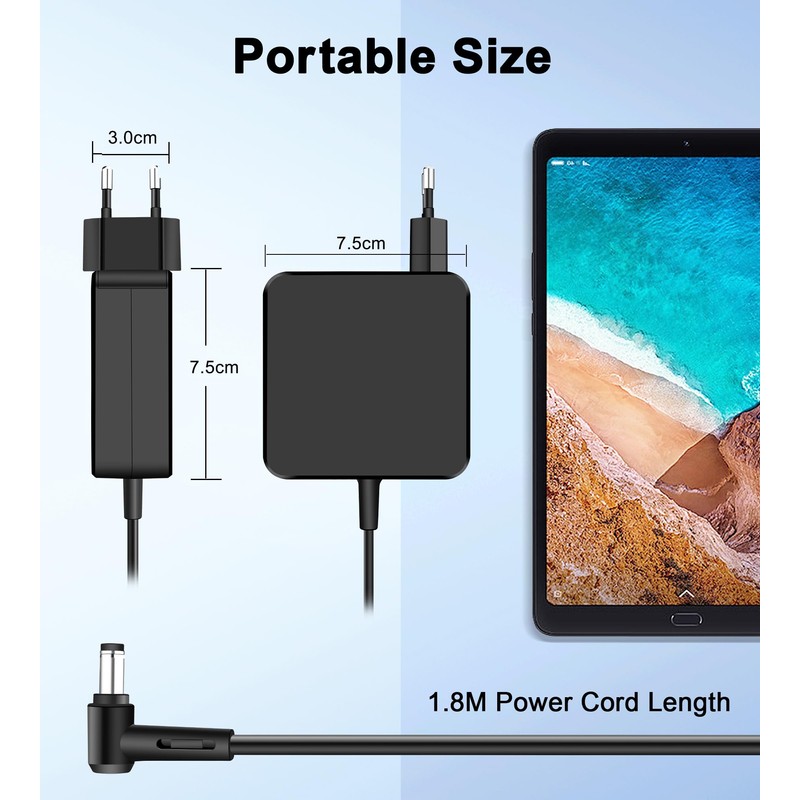 - Eingang: AC 220-230V 50 Hz; Ausgang: DC 19V-3,42A 65W (auch kompatibel mit Asus-Laptops 19V-2,37A 45W), Steckergröße: 4,0 mm x 1,35 mm Innenpol-Stecker (Nicht 4,0x1,7 mm oder 5,5x2,5 mm)