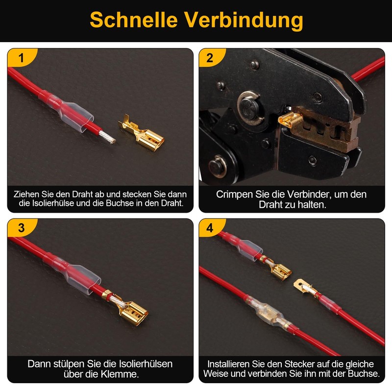 - Copper tin-plated material: flat connector terminal kits thanks to the use of brass coating, the plug can improve contact conductivity to ensure that the electrical components of work stability. The surface of the copper is covered with a tin layer, so it has good ductility, conductivity and durability. Its high hardness and durability allow for optimal performance in a variety of harsh environments