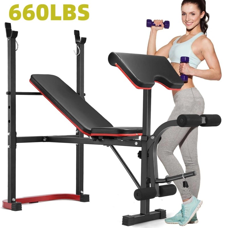 660lbs Weight Bench Set Bench for Home Gym Strength Training Adjustable Foldable