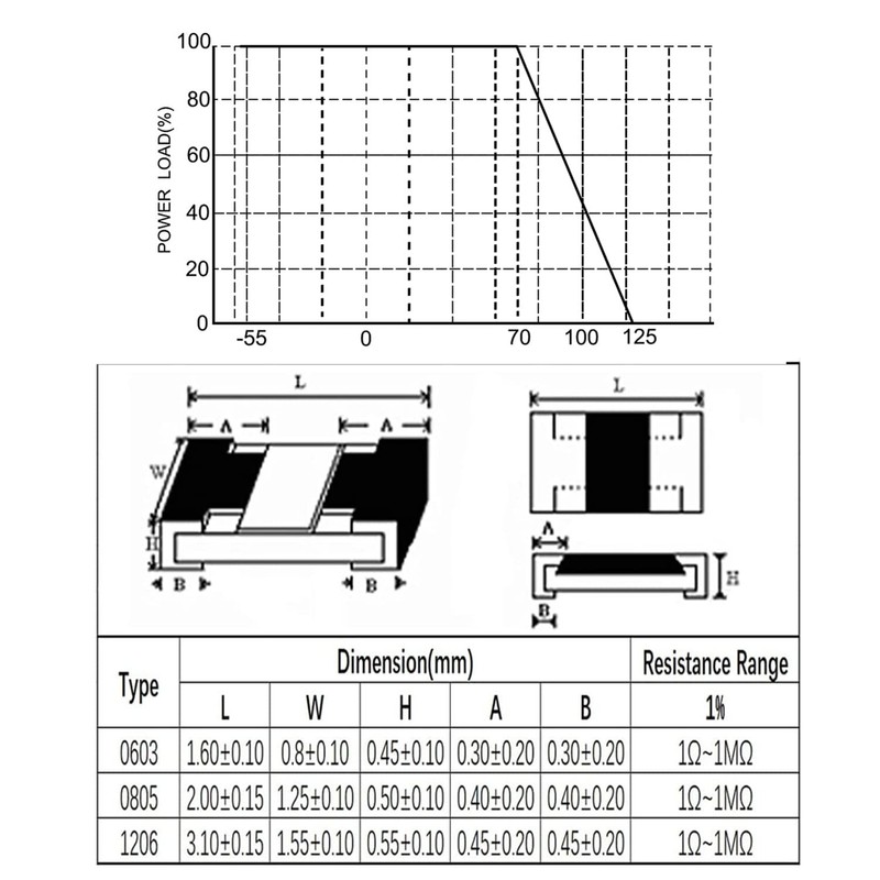 • Type: SMD Chip Resistor, Model: 1206, Power: 1/10W W, Max Tolerance: ±1%, Temperature Coefficient: ±100ppm/°C