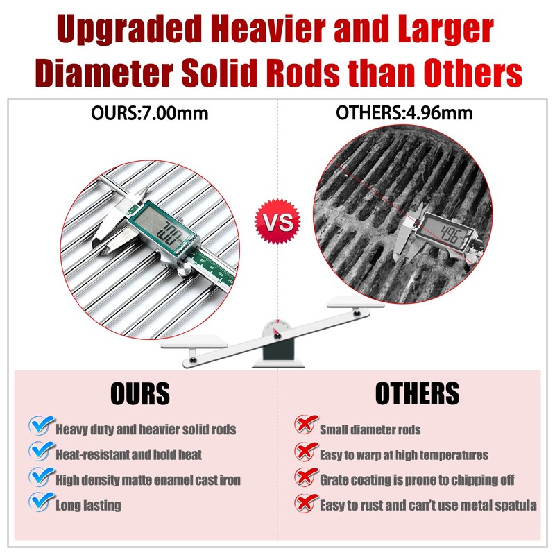 - ✅【UPGRADED HEAVIER AND LARGER DIAMETER SOLID RODS】 You will get the weber genesis 2 grill parts that are made of solid stainless steel. Weber genesis ii parts will last for many years if it's taken care of. ✅【HIGH HEAT RETENTION AND COOK FOOD FAST, DELIVERS EVEN HEAT DISTRIBUTION】 Weber genesis 2 gs4 grill parts replacement grates heavy duty and more durable than others. Perfect for searing and locking, long lasting. (Not like others stainless steel wrapped around tradition steel)