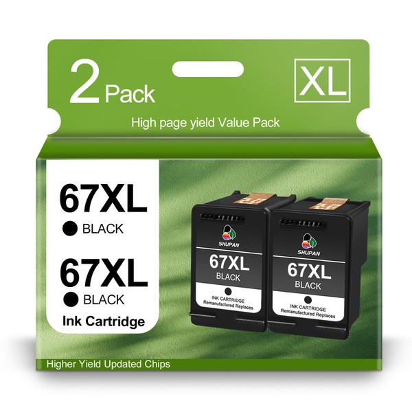 67XL Combo Pack Replacement for HP 67 67 XL Black for Envy 6058 6075 6055 6052 Envy Pro 6455e 6455 6458 6452 DeskJet 2734e 1255 2732 2755e 2752 4140 4155 Printer (2 Black)