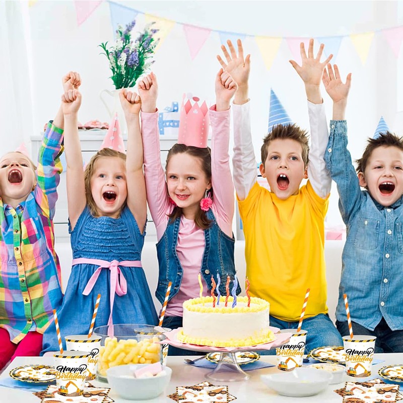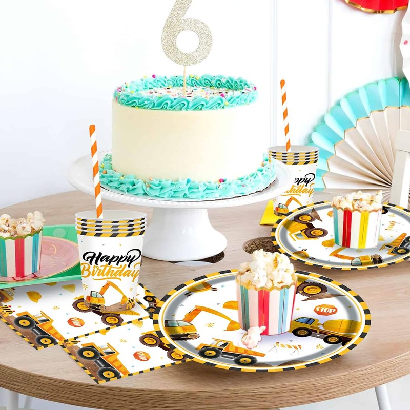 - Construction site party tableware set: construction site birthday decoration contains 16 pieces 7 inch construction site paper plates (18 cm), 16 pieces paper cups and 20 pieces napkins perfect for 16 guests.