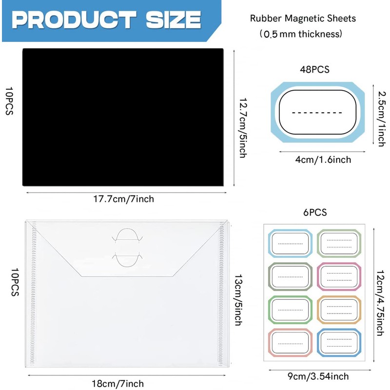 Color: 10PCS magnetic sheets+10PCS Bags+48PCS Label Stickers